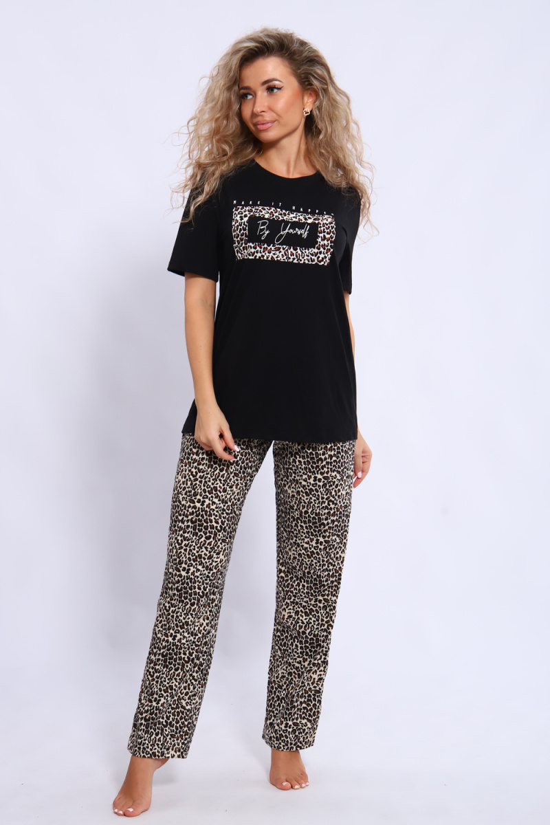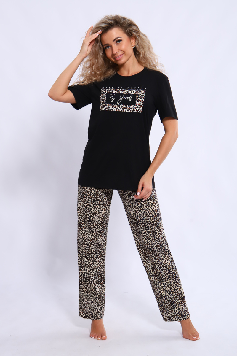 Костюм футболка и бриджи. Футболка полуприлегающего силуэта с коротким рукавом. Брюки прямого кроя на резинке.